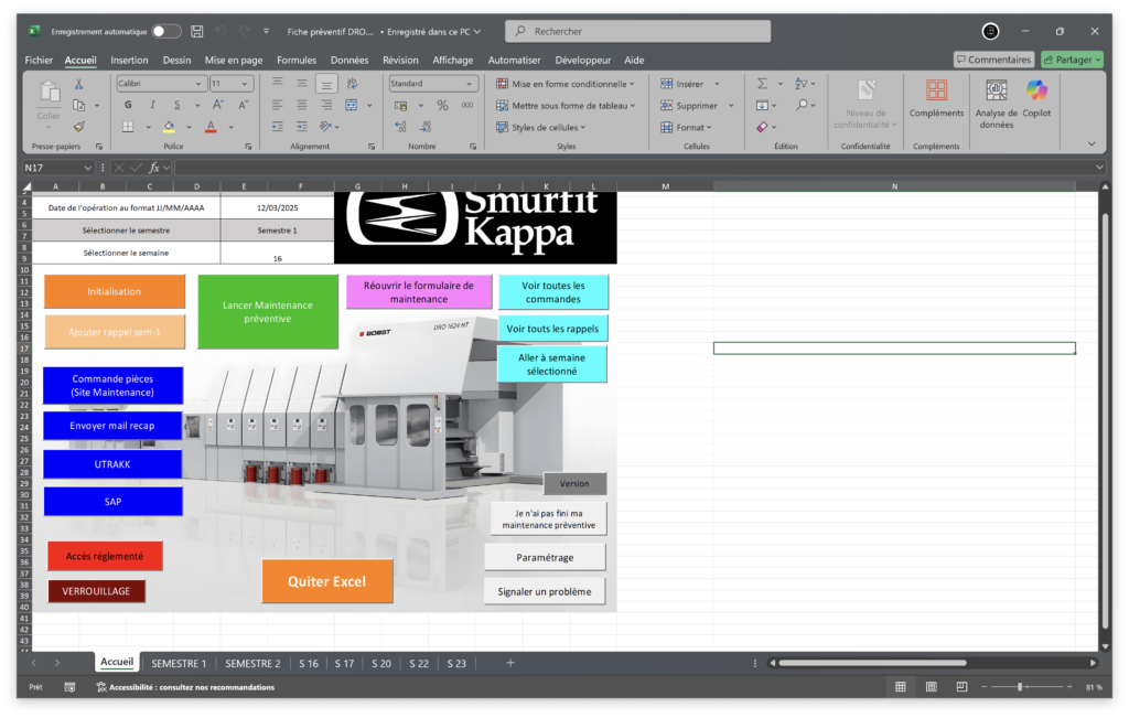Grâce à Excel, j’ai automatisé l’analyse des pannes récurrentes et la planification des interventions via des macros VBA et des tableaux croisés dynamiques. Word m’a permis de rédiger des procédures de maintenance normalisées et de générer des documents techniques avec mise en page avancée.